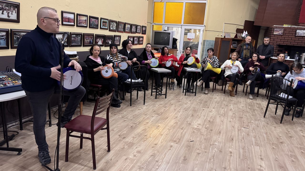 Kilimli Folklor Sanat ve Eğitim Derneğinin (KİFSED) çatısı altında yaklaşık 3 ay önce bir araya gelen yaşları 40 ila 65 arasında değişen 40 kadın, müzik eğitmeni Arda Alaca'dan darbuka eğitimi aldı.