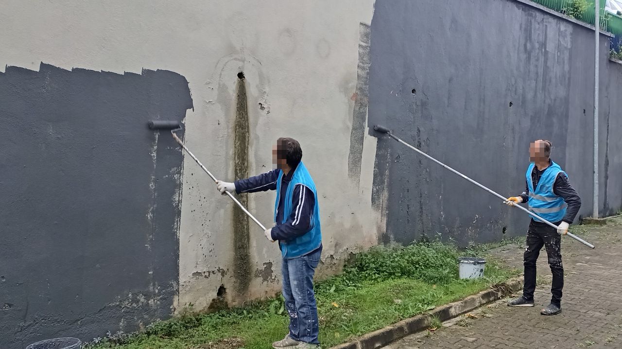 Bartın'da boyacılık eğitimi alan denetimli serbestlik yükümlüleri, kamu binalarını boyayarak yeni görünüme kavuşturuyor.
