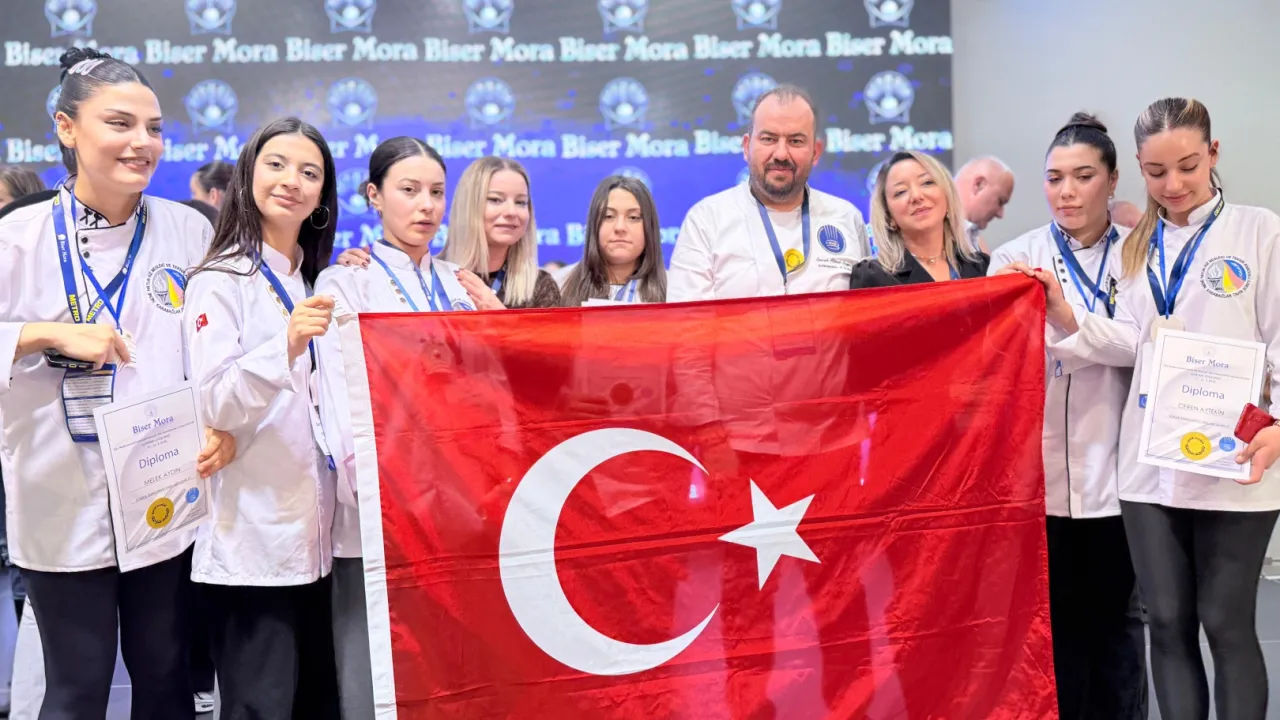 İzmirli öğrenciler, Hırvatistan'da düzenlenen uluslararası gastronomi festivalinde 4 altın, 2 gümüş ve 3 bronz madalya kazandı. Okul, Türkiye'den katılıp altın madalya alan tek ekip oldu.