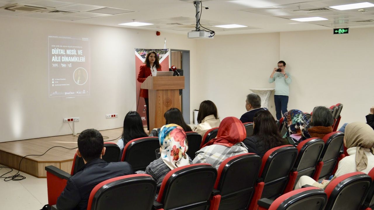 Yükseköğretim Kurulunun (YÖK) öncülüğünde yürütülen toplumsal farkındalık çalışmaları kapsamında düzenlenen seminerde konuşan Öğr. Gör. Dr. Hülya Özçağlar Eroğlu, dijital neslin teknolojiyle kurduğu güçlü ilişkiye dikkati çekerek, ebeveynlerin dijital dünyanın değişen dinamiklerini anlamasının önemini vurguladı.