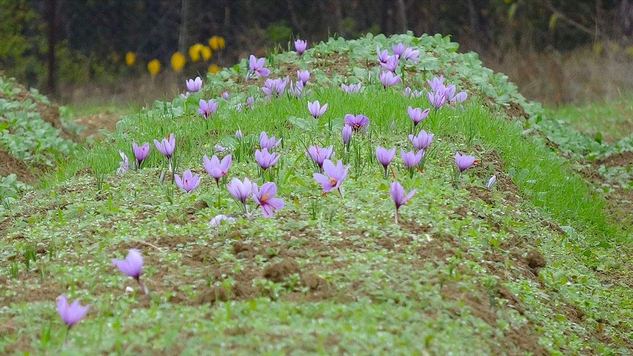 Safran üreticisi İsmail Yılmaz, AA muhabirine, hava sıcaklığının düşmesiyle safranın çiçeklenmeye başladığını söyledi.
