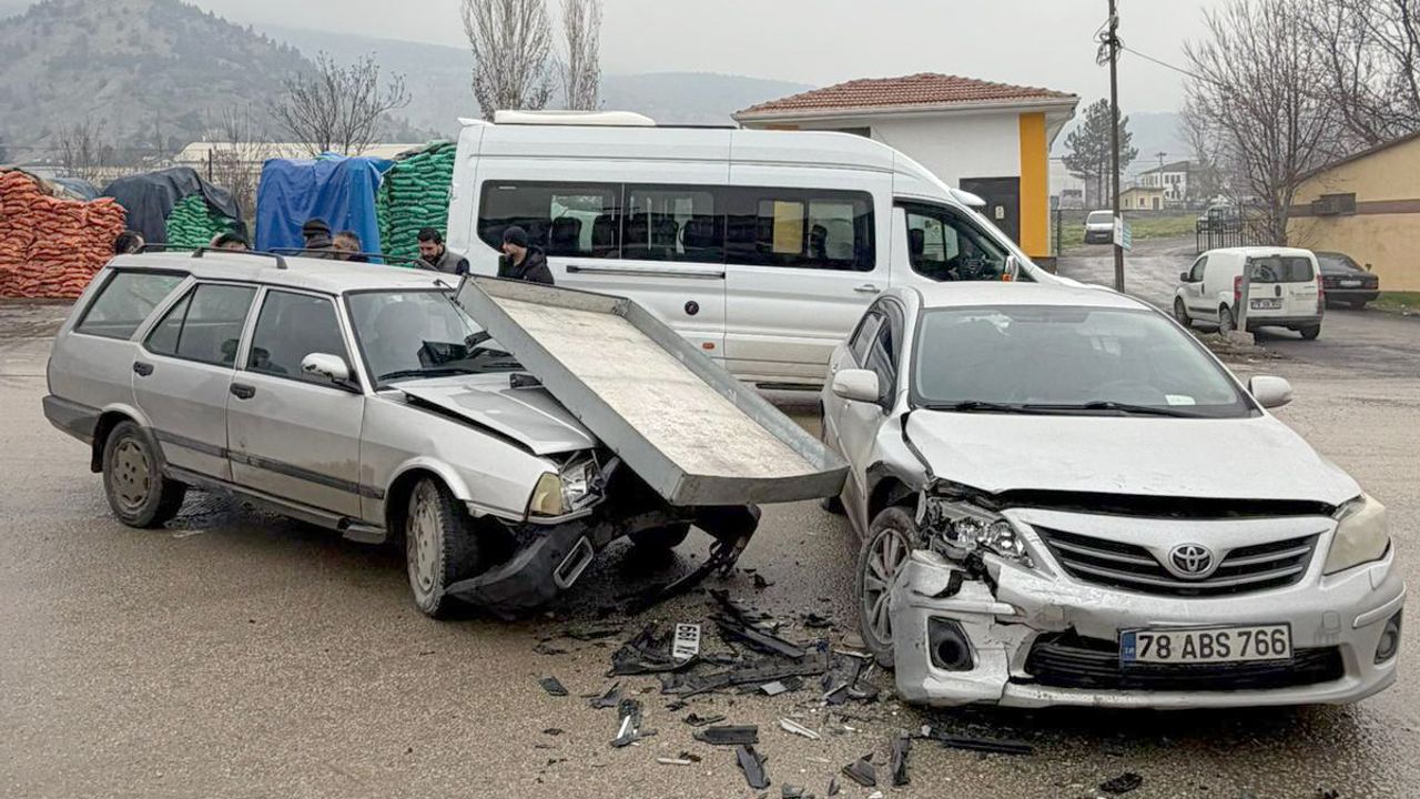 S.A. idaresindeki 78 ABS 766 plakalı otomobil ile R.G. yönetimindeki 78 BK 899 plakalı otomobil, Hürriyet Mahallesi Ateş Caddesi'nde çarpıştı.