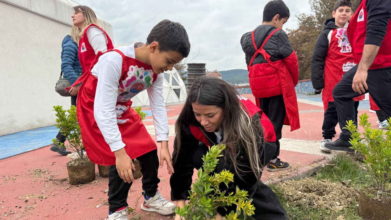 Programda devamında öğrenciler fidanları toprakla buluşturdu.