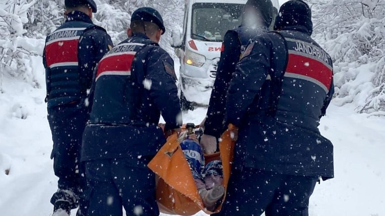 KARABÜK (AA) - Karabük'ün Safranbolu ilçesinde kar nedeniyle ulaşıma kapanan köyde solunum sıkıntısı yaşayan kadın hasta, jandarma ve sağlık ekiplerinin çabasıyla hastaneye kaldırıldı.