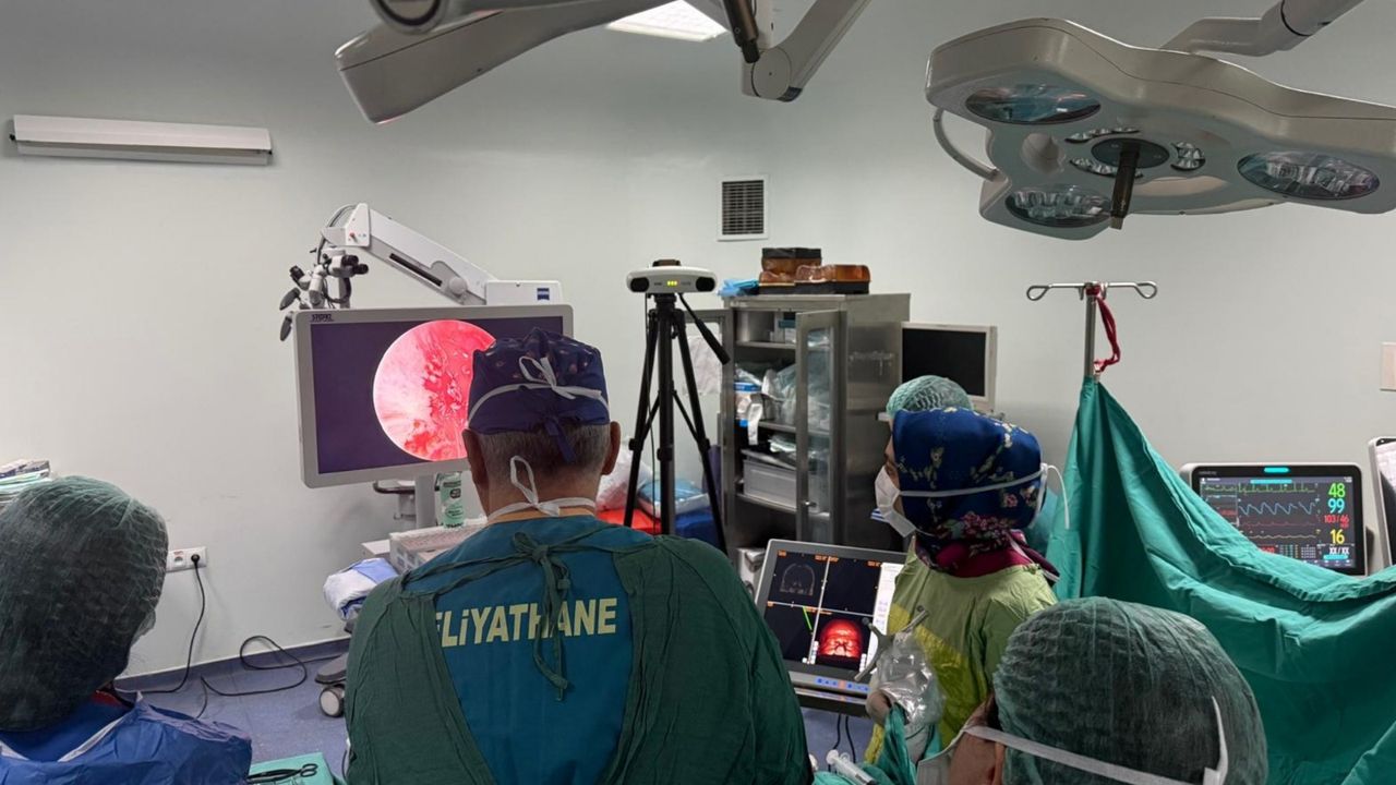 Beyin ve sinir cerrahisi uzmanı Op. Dr. Zeynep Dağlar tarafından gerçekleştirilen ve Kulak Burun Boğaz (KBB) Kliniğinin de destek verdiği operasyonda, hastanın kafa tasında herhangi bir kesi açılmadan, burun deliklerinden endoskopik kamera sistemiyle girilerek tümör başarıyla çıkarıldı.