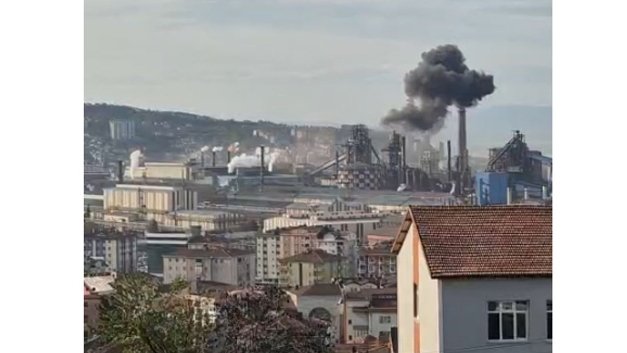 Karadeniz Ereğli'de sabah saatlerinde fabrikada yüksek ses ile patlama yaşandı. Siyah duman çıkarken vatandaşlar o anları cep telefonu ile kayıt altına aldı.