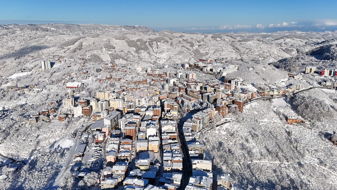 Beyaza bürünen 430 rakımlı Boztepe ise dronla havadan görüntülendi.