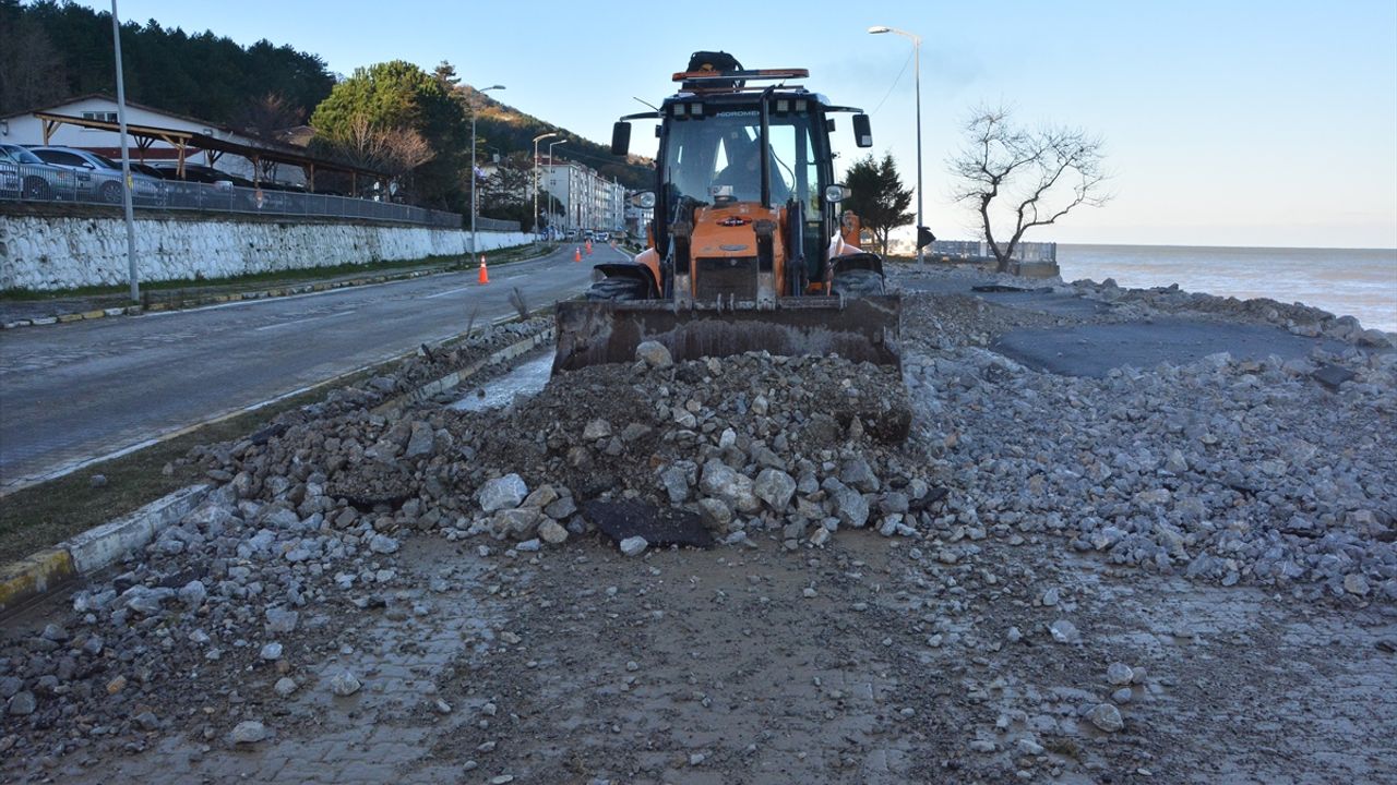 Karayolları ve belediye ekipleri, dalgaların yola ve işletmelere taşıdığı molozları temizlemek için çalışmalara başladı.