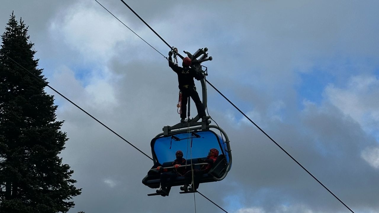 Senaryo gereği, arıza nedeniyle duran teleferikte 2 kişi mahsur kaldı.