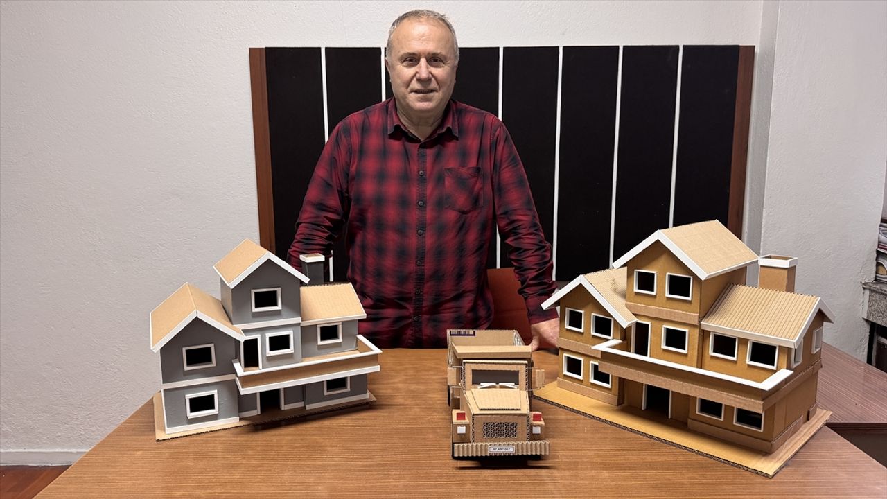 Zonguldak'ta yaşayan Kenan Güney, 10 yıl önce merak sardığı kartondan maket yapımı için evinin bir köşesini mini atölyeye çevirdi.