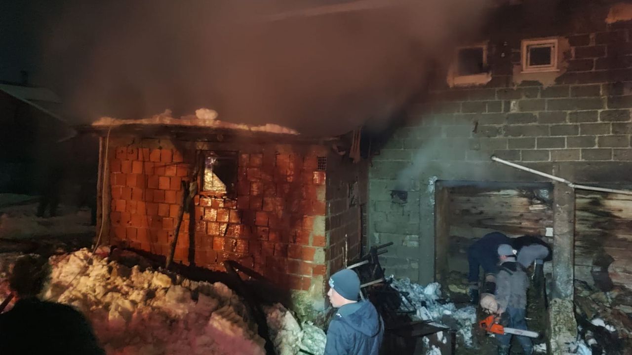 Ekipler tarafından söndürülen yangında ev ve ahırda hasar oluştu, bir büyükbaş hayvan telef oldu.