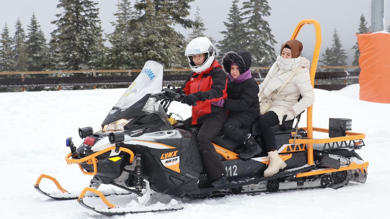 Merkezde görev yapan Jandarma Arama Kurtarma (JAK) timi tarafından kayak eğitimi verilen çocuklar, kar motoruna bindirildi.