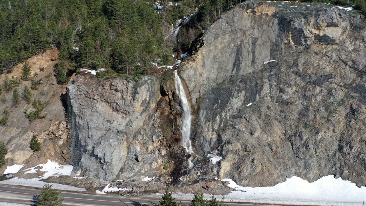 KASTAMONU (AA) - ÖZGÜR ALANTOR/ÜNAL KESMEN - Kastamonu'nun Şenpazar ilçesinde, karın erimesiyle oluşan ve bölge halkının 'kar şelalesi' adını verdiği şelale ilgi görüyor.