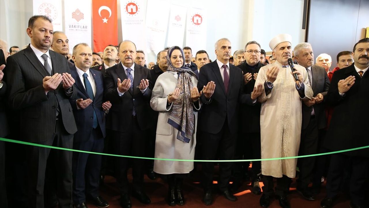 23 Ağustos Ortaokulu Spor Salonu'nda düzenlenen, 99 vakıf eseri ve kutsal emanetin yer aldığı serginin açılışı öncesinde, Kur'an-ı Kerim okunup dua edildi.