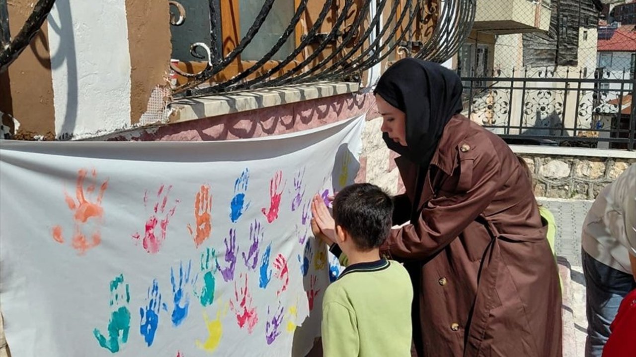 Yüz boyama ve el izi baskısı gibi etkinliklerin de yapıldığı programda çocuklara ay yıldızlı balonlar hediye edildi.