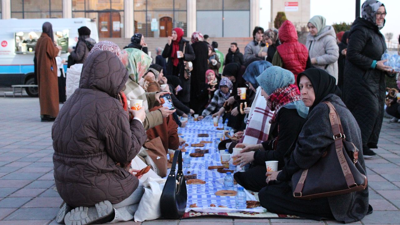 Kur'an-ı Kerim tilavetiyle başlayan programda katılımcılar simit, çorba, su ve hurma ile iftar yaptı.