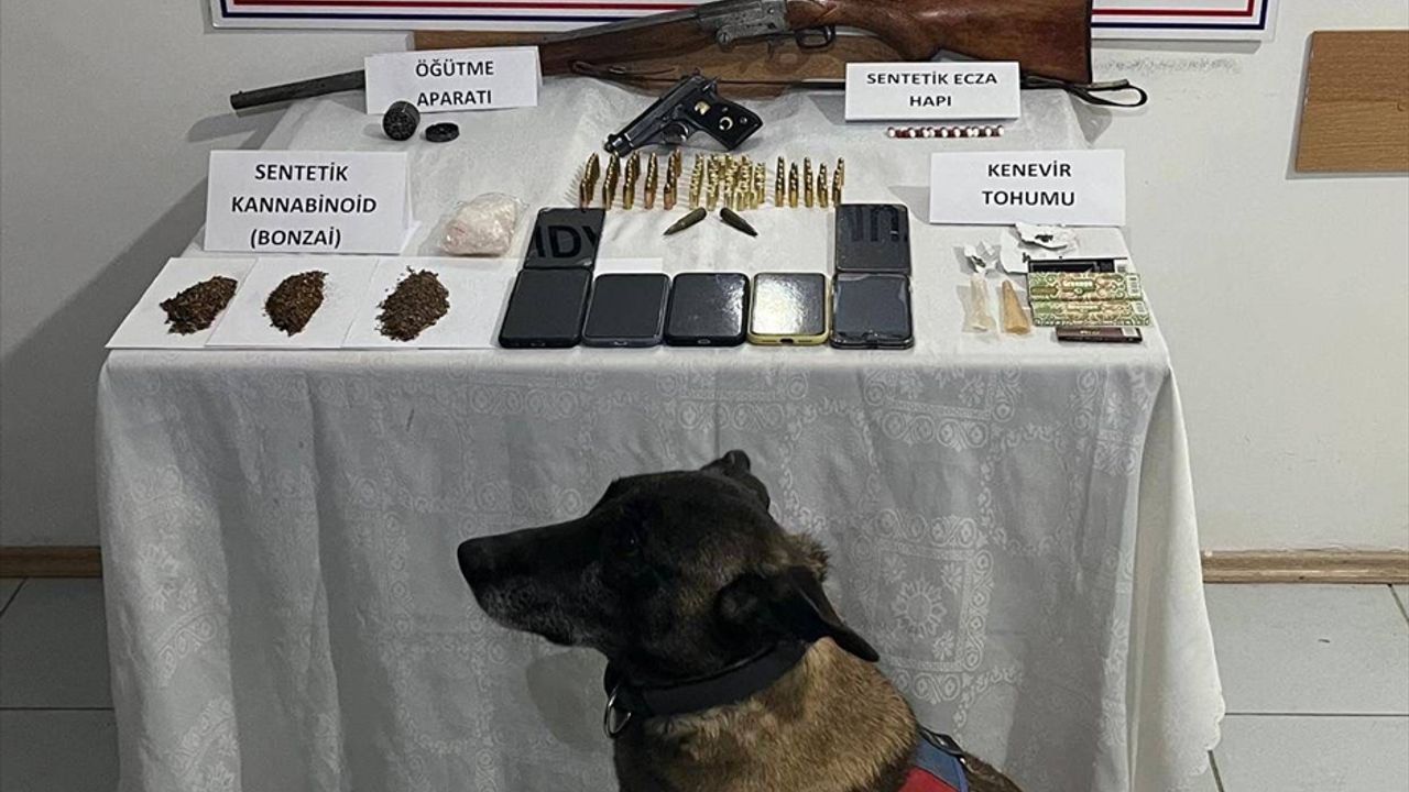 Adreslerde yapılan aramada 57 sentetik uyuşturucu katkılı tütün, 18 sentetik ecza hapı, 3 gram kenevir tohumu, uyuşturucu madde öğütme aparatı, 19 kilitli poşet, ruhsatsız tabanca, 70 tabanca fişeği, ruhsatsız av tüfeği, 7 cep telefonu, 7 sim kart ele geçirildi.