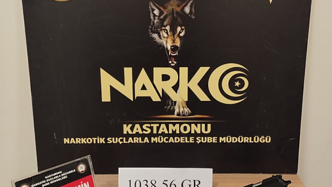 Araçta narkotik dedektör köpeği 'Ceku'nun katılımıyla arama yapıldı. Aramada, 1 kilo 38 gram sentetik ecza hapı ve kurusıkı tabanca ele geçirildi.