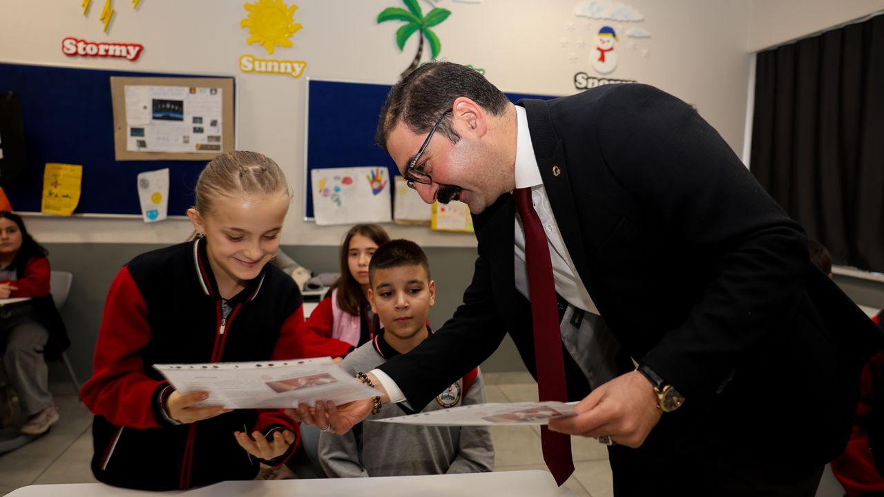 Öğrencileri sınıflarında ziyaret eden Toğrul, karnelerini verdikten sonra onlara çeşitli hediyeler dağıttı.