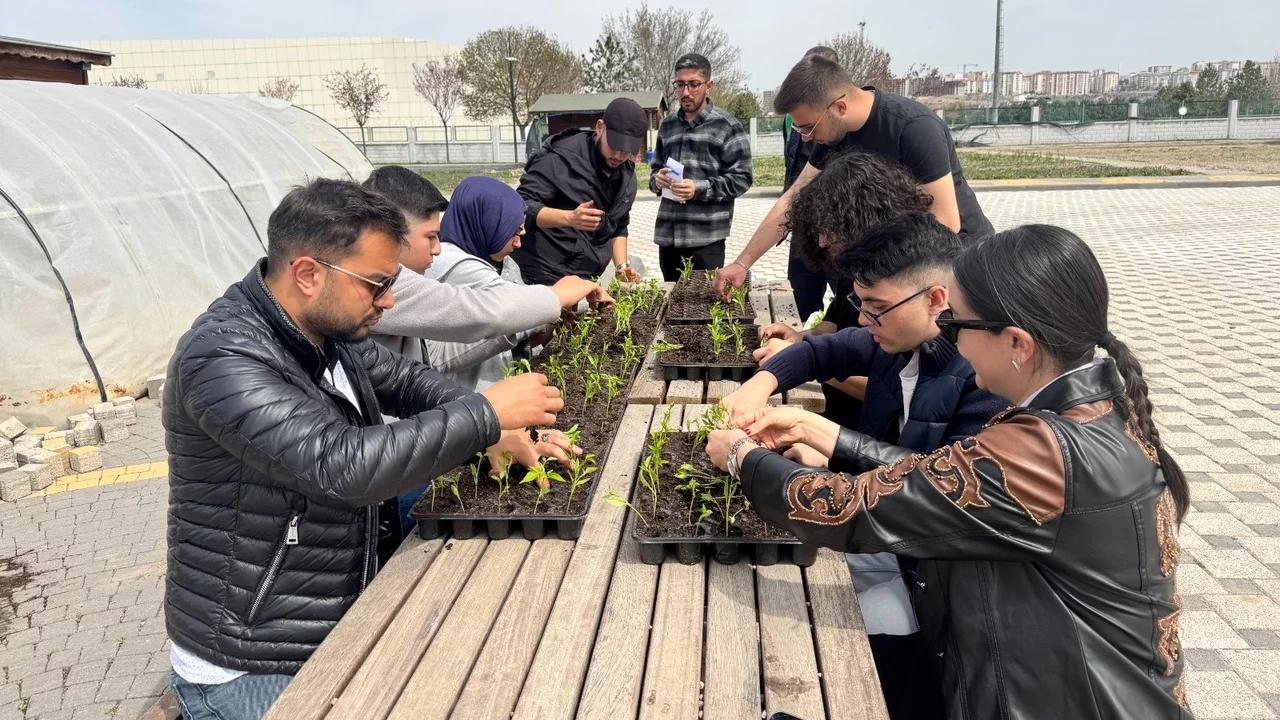 Kayseri Büyükşehir Belediyesi, Doğal Ürünler Bahçesi'nde Kayseri Üniversitesi öğrencilerine yönelik uygulamalı tarım eğitimiyle doğal üretimin yaygınlaştırılmasına katkı sağladı.