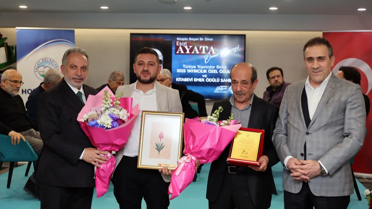 Türkiye Yayıncılar Birliği tarafından 2025 Yayıncılık Özel Ödülü ve Kitabevi Emek Ödülüne layık görülen Esat Ayata'ya, program sonunda Başkan Mustafa Yalçın ve Kaymakam İlyas Memiş tarafından plaket takdim edildi.