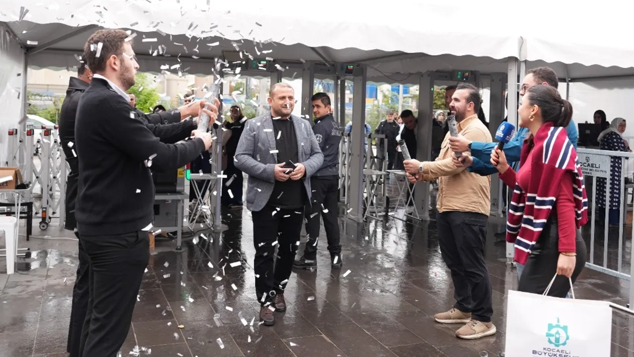 Uluslararası 15. Kocaeli Kitap Fuarı'nın 1 milyonuncu ziyaretçisi olan Fuat Uçan, konfetilerle karşılandı. Uçan, '1 milyonuncu ziyaretçi olduğum için hem mutlu hem de gururluyum' dedi.