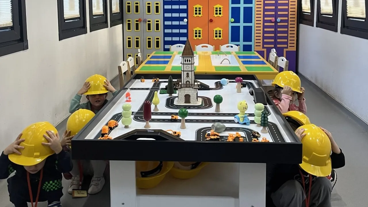 Kocaeli Büyükşehir Belediyesi'ne bağlı Lokomotif Çocuk Köyü'nde 'Minik Mimarlar Atölyesi'ne' katılan öğrenciler, '13 Ekim Dünya Afet Risk Azaltma Günü' kapsamında afet bilinci eğitimi aldı. Eğitimde minik mimarlara güvenli yapılar anlatıldı.