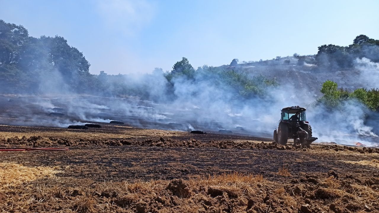 Ekiplerin müdahalesi sonucu ormanlık alana sıçramadan söndürülen yangında, tarladaki yaklaşık 400 saman balyası yandı.