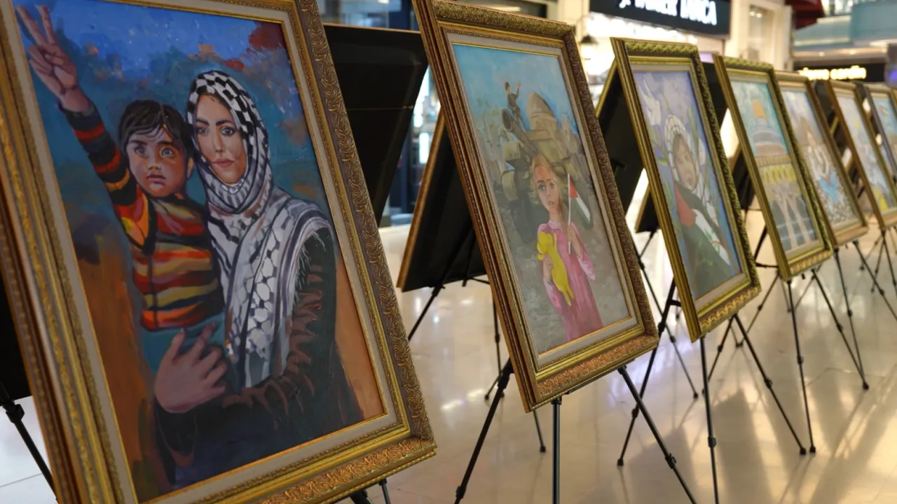 Konya'da misafir edilen 150 Filistinli çocuktan aralarında resim yapma yeteneği bulunanların eserlerinden oluşan resim sergisi, bir alışveriş merkezinde ziyarete açıldı. Çocukların duygu, düşünce ve yaşadıkları zorlukları sanat yoluyla ifade ettikleri birbirinden güzel 20 eserin yer aldığı sergi vatandaşlar tarafından da ilgiyle karşılandı.