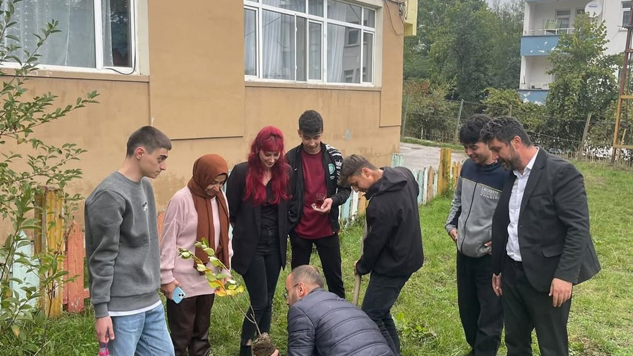 Öğrenci ve öğretmenlerin katılımıyla düzenlenen etkinlikte, okul bahçesine farklı türlerde fidanlar dikildi.