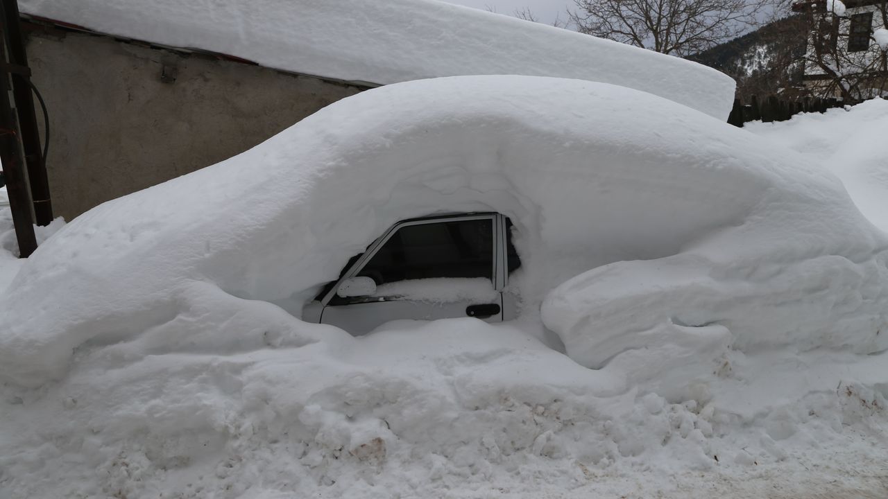 KASTAMONU (AA) - Kastamonu'nun 1150 rakımlı ilçesi Küre'de kar kalınlığı 1,5 metreyi aştı. Vatandaşlar kar altında kalan araçlarını çıkarmak için yoğun çaba harcadı.