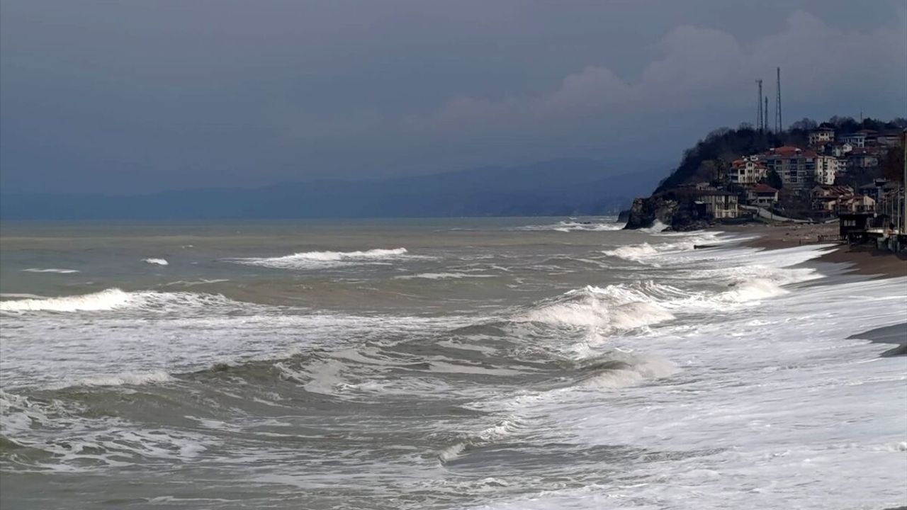 Düzce'nin Akçakoca ilçesinde kuvvetli rüzgar nedeniyle dalga boyu yükseldi.