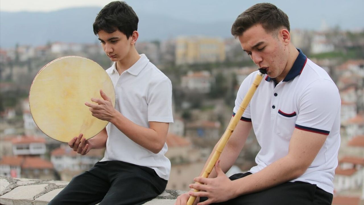 KARABÜK (AA) - ORHAN KUZU - UNESCO Dünya Miras Listesi'nde yer alan Karabük'ün Safranbolu ilçesinde iki lise öğrencisi, Tarihi Çarşı'da ney ve tef seslerini yankılandırarak geleneksel Türk müziğini yerli ve yabancı turistlere tanıtıyor.