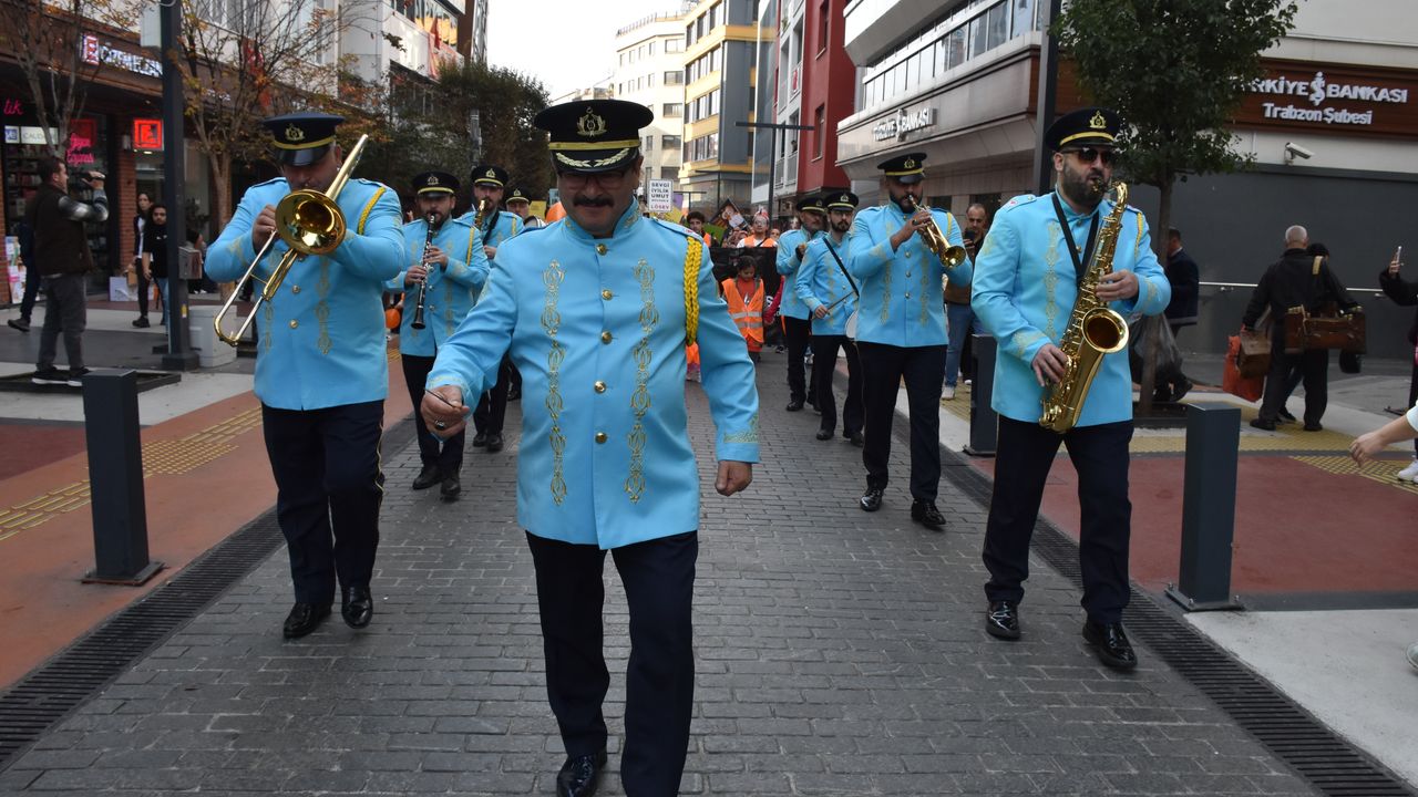 Turuncu yelekler giyen aileler, çocukları ve gönüllüler, Büyükşehir Belediyesi bando takımının eşliğinde Atatürk Anıtı'na kadar yürüdü.