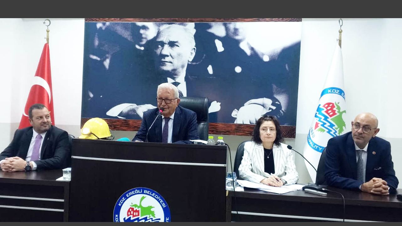 Atatürk Kültür Merkezi Nikah Salonu'nda Karadeniz Ereğli Belediye Başkanı Halil Posbıyık başkanlığında belediye meclisinin ikinci oturumu yapıldı. Posbıyık, kürsüde yanan madenci baretini gösterdi, dünya madenciler gününü kutladı.