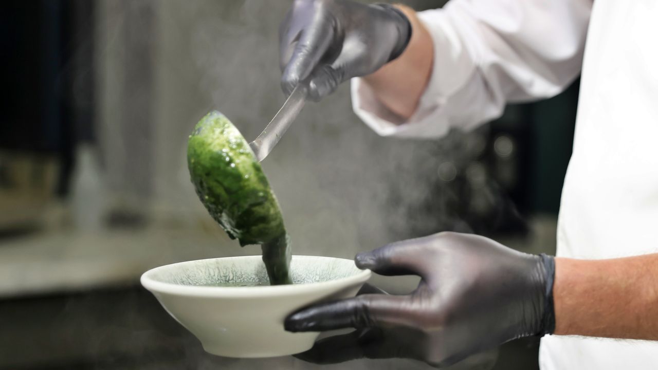 Isırgan çorbası tarifini AA muhabirine anlatan şef Fatih Sezenlik, ısırgan otlarını temizlerken elleri yakmaması için mutlaka eldiven kullanılması gerektiğini söyledi.