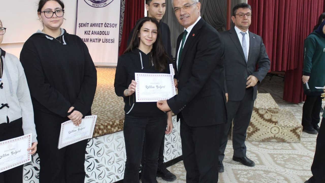 Yarışma sonunda dereceye giren okullara belgelerini veren İlçe Milli Eğitim Müdürü Ahmet Yozgat, gençliğin bilgiyle, öz güvenle, milli ve manevi değerlerle yetişmesinin son derece önemli olduğunu söyledi.