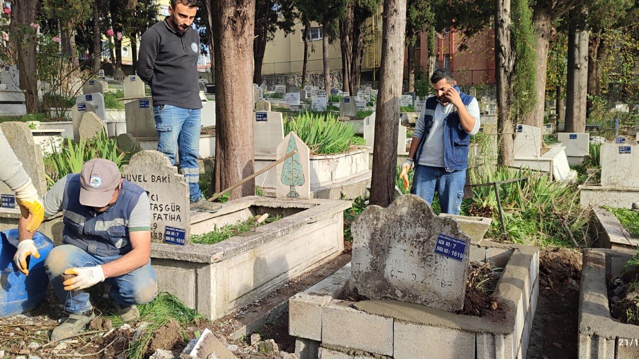 19 Kasım 2023 tarihinde yaşanan büyük fırtına felaketinde mezarlıktaki 100’e yakın selvi ağacının yıkılması sonucu onlarca mezar hasara uğramıştı. Yıkılan ağaçların kesilip temizlenmesi başta olmak üzere büyük bir çalışma yürüten ekipler, hasara uğrayan mezarları da onarmaya çabalamışlardı. Bu ekipler şimdi de mezarlıktaki sahipsiz mezarların yıkılan veya bozulan mezarlarını onarıyorlar.