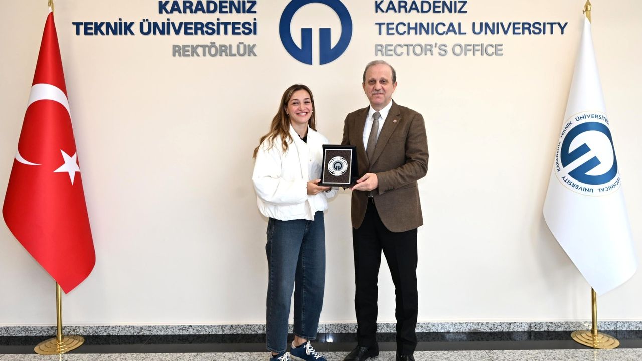 TRABZON (AA) - Milli boksör Buse Naz Çakıroğlu, Karadeniz Teknik Üniversitesi Rektörü Prof. Dr. Hamdullah Çuvalcı'yı makamında ziyaret etti.