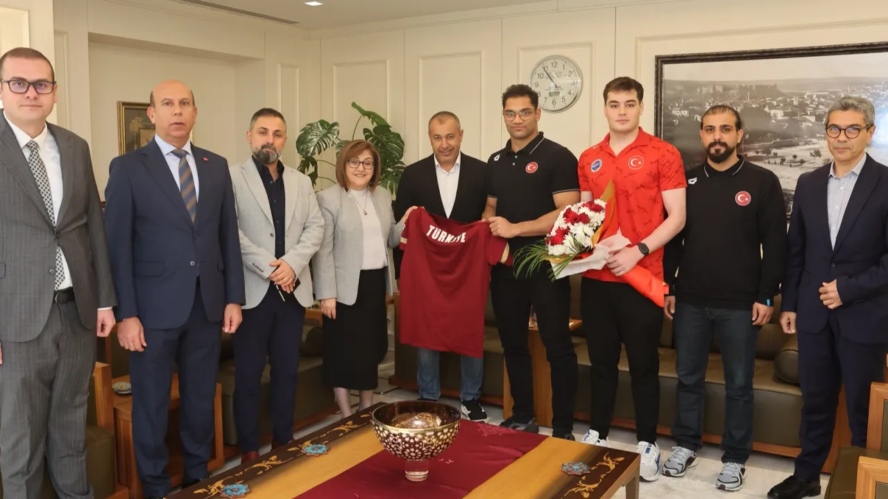 Gaziantep Büyükşehir Belediye Başkanı Fatma Şahin, yüzme branşında 'Olimpik Kadro Sporcusu' olarak kariyerini sürdüren Milli Yüzücü Kaan Kara ile paletli yüzme branşında Türkiye rekorlarının sahibi, Avrupa Şampiyonu Kaan Efe Kaya'yı makamında misafir etti.