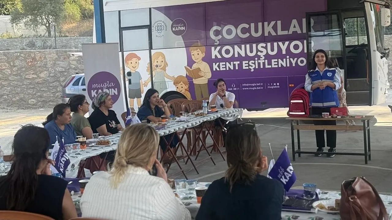 Muğla Büyükşehir Belediyesi'nin 'Kadınlar Güçleniyor Kent Eşitleniyor' vizyonuyla Milas Bozbük'te ziyaretlerine başlayan Gezici Da(Ya)Nışma Otobüsü, kırsal mahallelerde kadınlar ve çocuklarla buluşmaya devam ediyor.