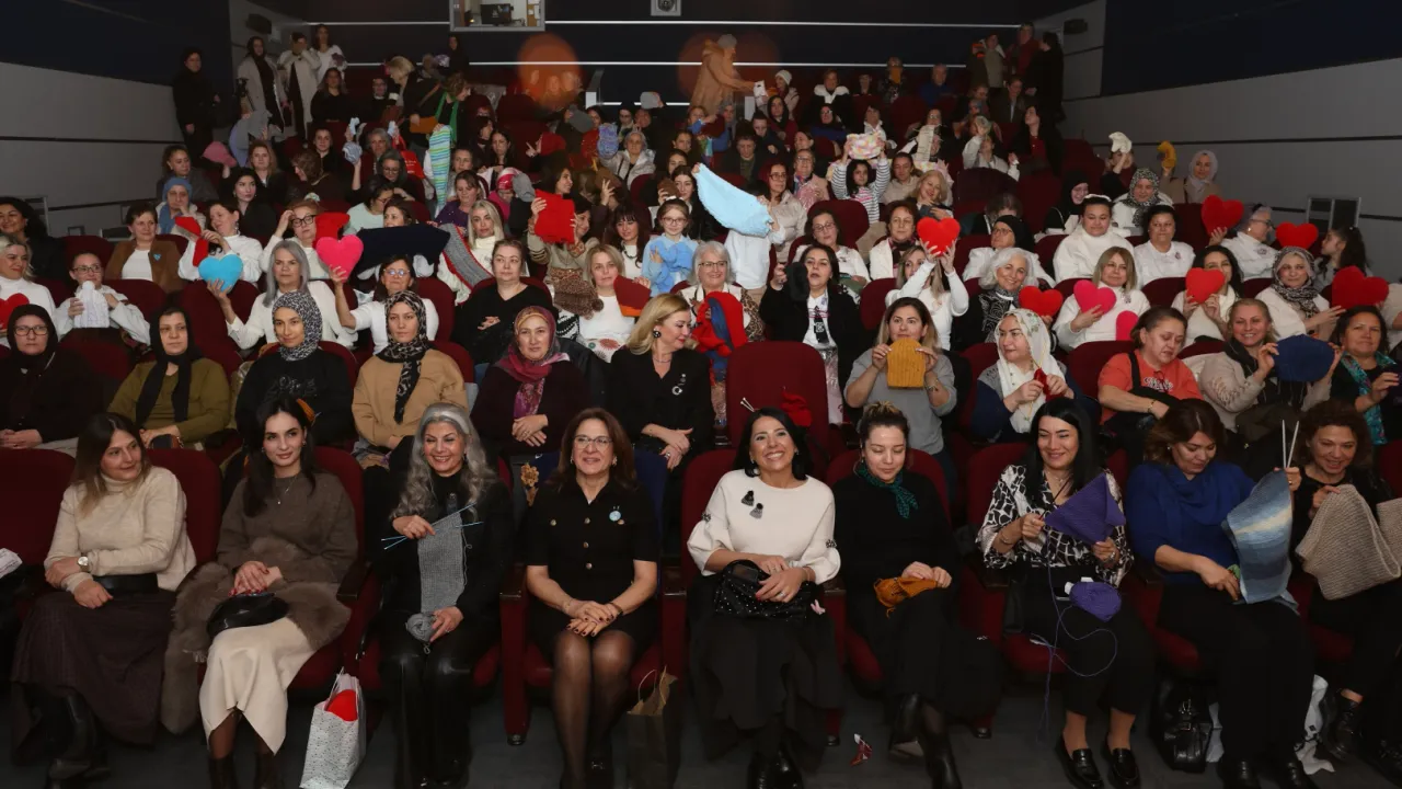 Nilüfer Belediyesi ve Elif Sanat Kültür ve Kadın Dayanışma Derneği iş birliğiyle gerçekleştirilen 'Kalpten İlmekler İyilik Perdesinde' projesinde yaklaşık 200 kadın sinema salonunda hem film izledi hem de Harmancık'taki ihtiyaç sahibi çocuklar için atkı, bere ve yastık ördü.