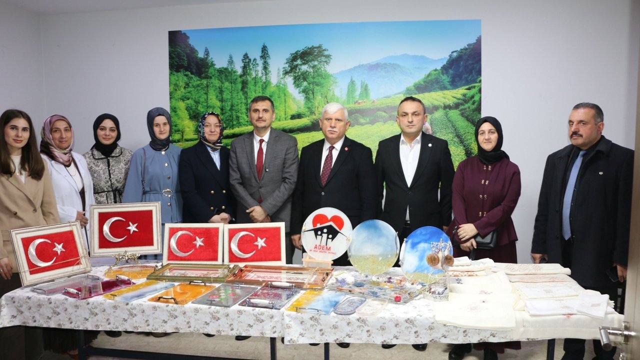 Of Kaymakamlığı Sosyal Yardımlaşma ve Dayanışma Vakfı bünyesinde faaliyet gösteren Aile Destek Merkezi'nde (ADEM) düzenlenen programda, filografi, giyim, amigurumi ve hasır işleme kurslarında eğitim alan 65 kursiyerin ürünleri sergilendi.