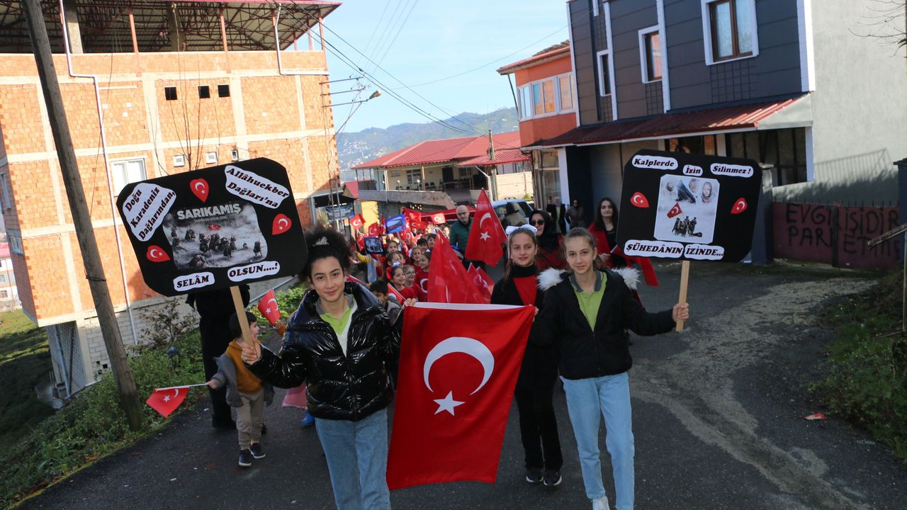 TRABZON (AA) - Trabzon'un Of ilçesinde 1. Dünya Savaşı'nda on binlerce askerin şehit olduğu Sarıkamış Harekatı'nın 111. yılı dolayısıyla şehitlere saygı yürüyüşü düzenlendi.