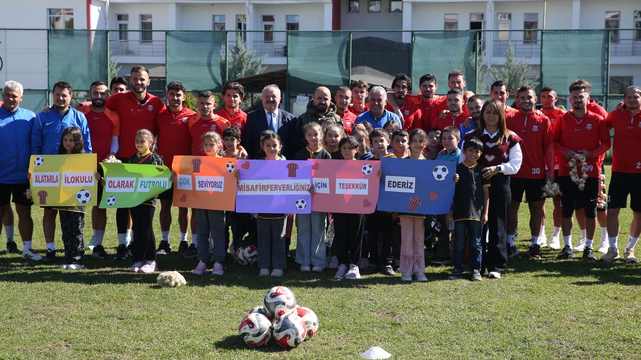 Taşköprü ilçesine bağlı Alatarla köyünde bulunan Alatarla İlkokulu öğretmen ve öğrencileri, antrenman öncesi GMG Kastamonusporlu futbolculara ziyarette bulundu.