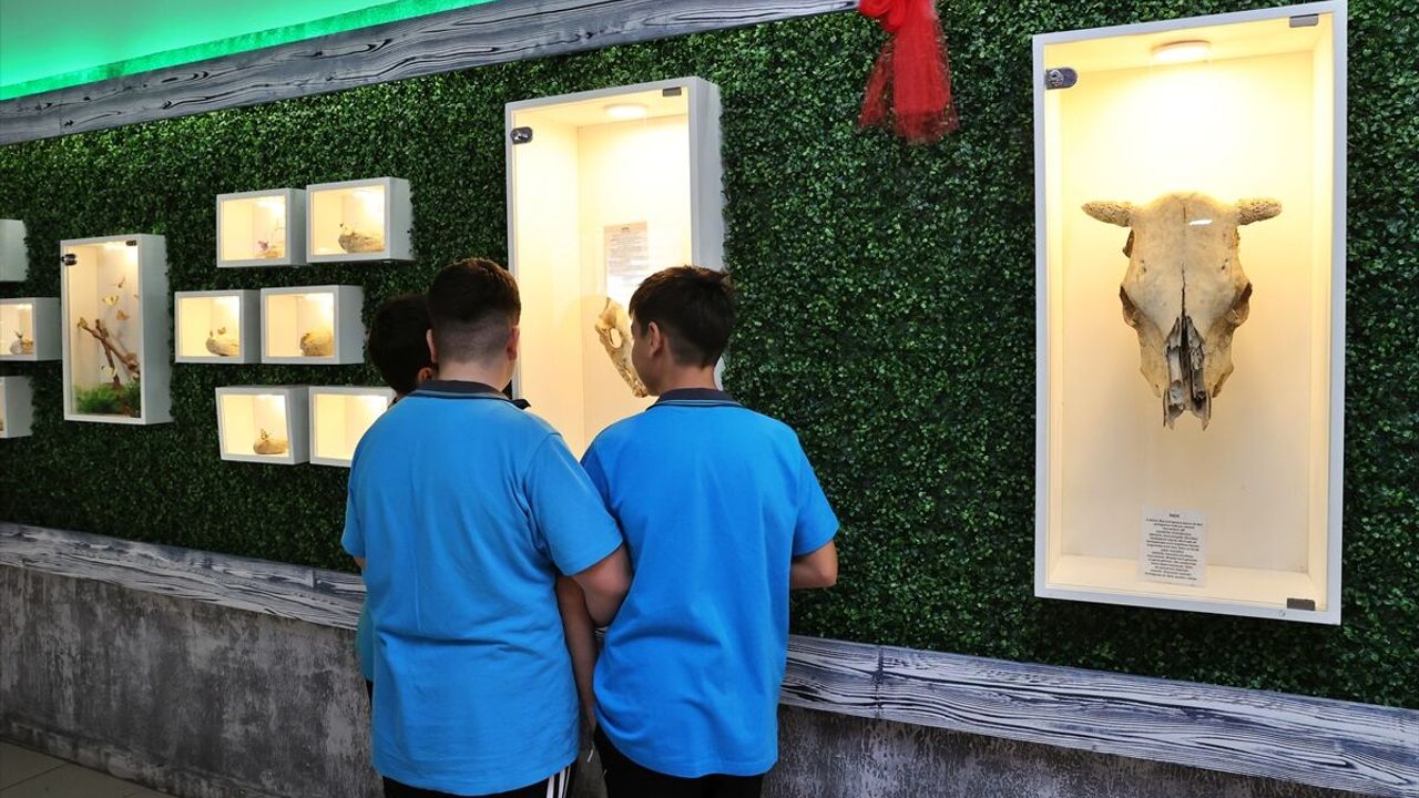 SAMSUN (AA) - VEYSEL ALTUN - Samsun'un Canik ilçesindeki Fatih Ortaokulu'nda kurulan Doğa Müzesi'nde öğrenciler kitaplarda gördükleri örnekleri yakından inceleme fırsatı buluyor.