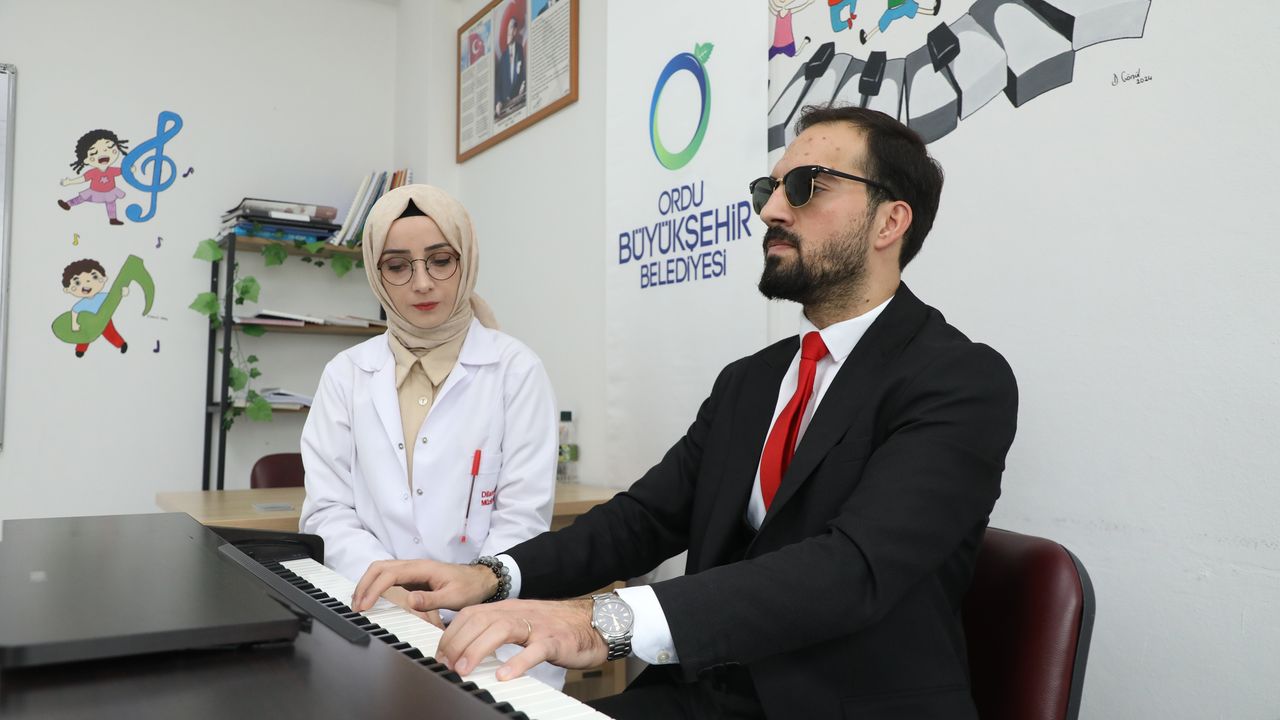 ORDU (AA) - Ordu'da yaşayan görme engelli Kemal Çoban, Ordu Büyükşehir Belediyesi Meslek ve Sanat Eğitimi Kursları (ORMEK) aracılığıyla piyano çalmayı öğrendi.
