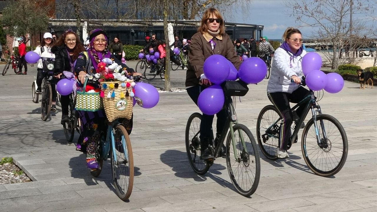 Ordu Barosu Kadın Hakları Komisyonunca Altınordu ilçesindeki rıhtım bölgesinde düzenlenen etkinliğe katılan kadınlar, balon ve kurdeleler ile süsledikleri bisikletleriyle sahil boyunca pedal çevirdi.