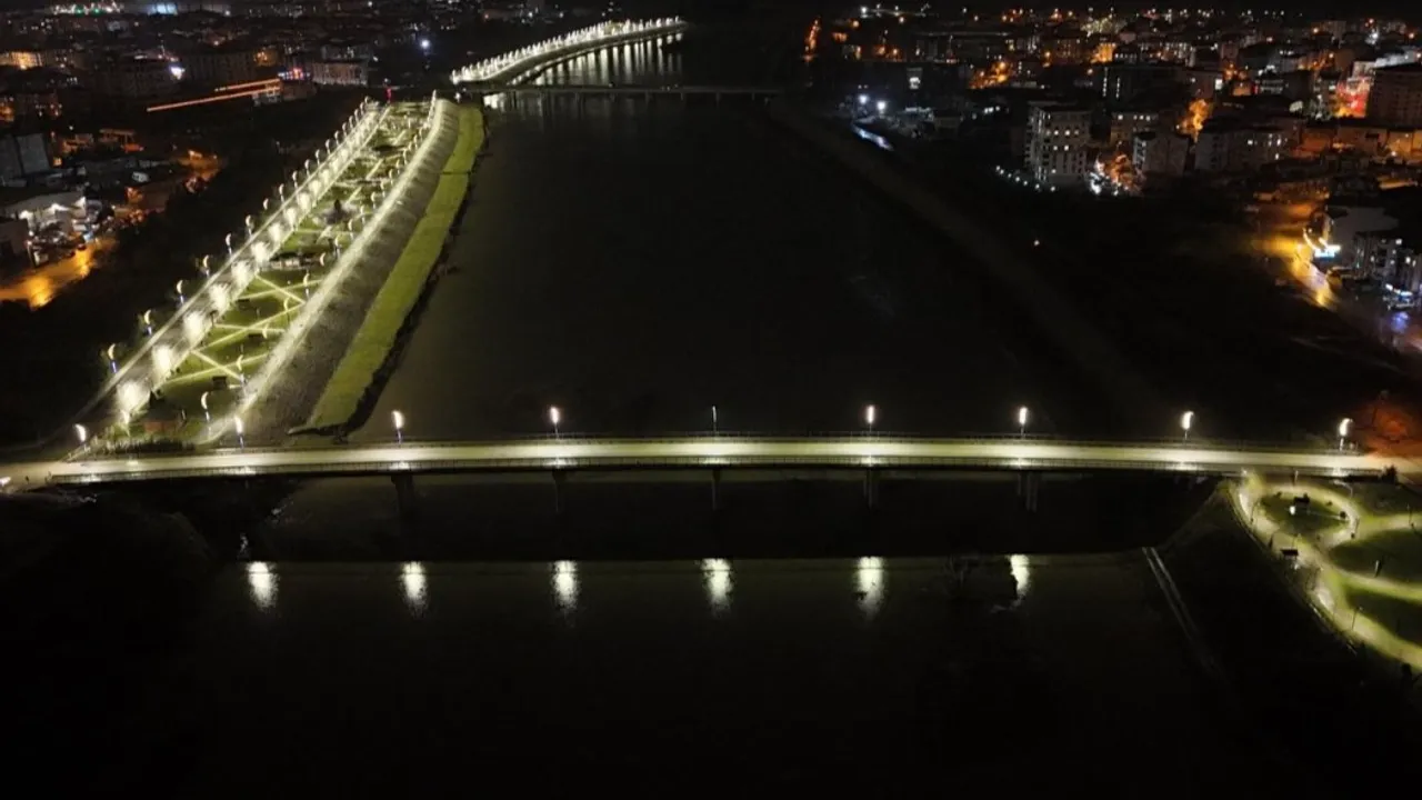 Gece saatlerinde köprünün daha güvenli ve olması için yapılan aydınlatma çalışmaları ile birlikte Yeni Melet Köprüsü, estetik bir görünüm kazandı.