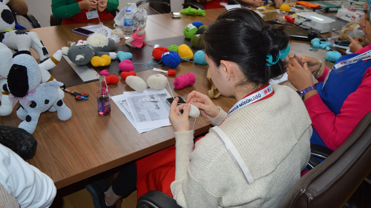 Denetimli Serbestlik Müdürlüğünün, Gençlik ve Spor İl Müdürlüğünce kurulan atölyede kursiyerler için amigurumi tekniğiyle oyuncak yapımı eğitimine başlandı.